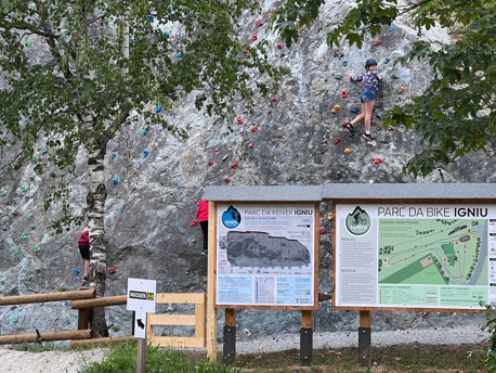 Es gibt nebst dem Kletterpark auch ein Bike Skills Park für Anfänger und Kinder/ Jugendliche, eine Grillstelle inkl. Holz, Tische und Bänke, einen Fussballplatz wie auch der nahegelegene natürliche Weiher und Badesee "Giachen".
