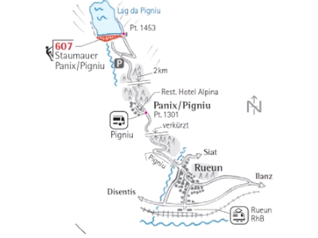 An der Staumauer hinter Panix / Pigniu wurde im Sommer 2012 ein künstlicher Klettergarten für Familien eingerichtet. Auf Initiative der örtlichen Gemeinden und der Tourismusförderungskampagne Reiver Surselva sind perfekt abgesicherte und bis zu 35m lange Routen in der geneigten Betonwand entstanden. Durch die Konstruktion als Gleichgewichtsstaumauer ist das Gelände nie senkrecht oder überhängend (unten etwa 55 Grad, oben etwa 80 Grad).
