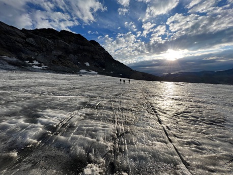 Der zweite Tag führt uns über den ausgedehnten Hüfigletscher an den Fuss des Schärhorns. Viel Geröll, einige Schnee- und Eispassagen erwarten uns noch, bevor wir den Gipfel betreten. Luftig und exponiert thront dieser hoch über den weiten Gletscherflächen. Auf derselben Route steigen wir zurück und umrunden die Chammlihoren. Nochmals sind einige Höhenmeter aufwärts zu bewältigen, bevor sich unsere Rundtour am Chammlijoch schliesst. Der Abstieg via Iswändli und der Bergwanderweg zurück zum Klausenpass kennen wir schon und so klingt die Tour allmählich aus.