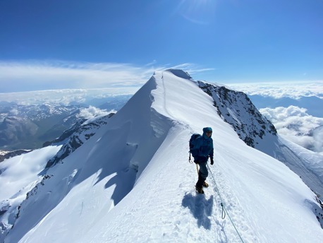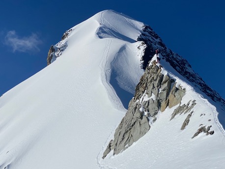 Der Biancograt ist ein großer Traum vieler Bergsteiger. Der Firngrat wird auch die "Himmelsleiter" genannt, so einmalig zieht er sich hinauf zum Piz Bianco. Beeili Dich, den auch diese Firnluppe schmilzt mit der Kilmaerwährmung!