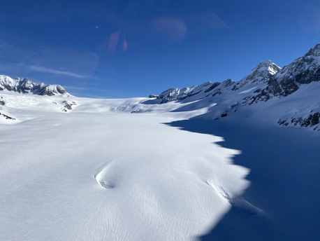 Vor Ihnen liegen unberührte Tiefschneehänge, die verträumt auf Sie warten.