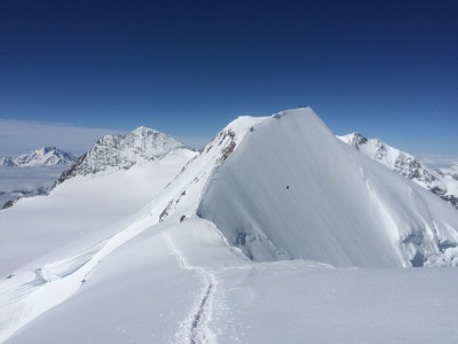 3.Tag: Heute erwartet uns die Königsetappe der Tour. Wir steigen über den imposanten Griesgletscher hinauf zum Blinnenhorn (3373m). Auf dem Gipfel werden wir belohnt mit einer wunderschönen Aussicht auf die Berner- und Walliser-Alpen. Anschliessend fahren wir hinunter zum Rif. Claudio e Bruno (2708m) 1200hm / 4Std.