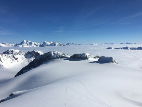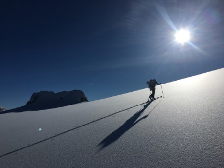 Die Abfahrt nach Fuorns entschädigt mit ihren 1800Hm für den Austieg und ist bei Pulverschnee kaum zu überbieten. Bei Firn geht's auch schon einmal ins Val Blenio hinunter.