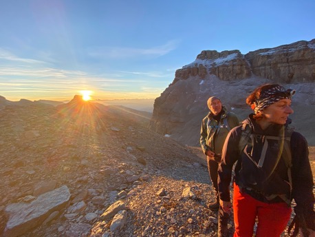 Der Ringelspitz oder Piz Barghis bietet eine wunderbare Bergtour im UNESCO Naturerbe. Die weltbekannte Glarnerüberschiebung erlebt man bei der Besteigung hautnah, ja man überschreitet sie wortwörtlich. Am ersten Tag steigen wir ab Kunkelspass in die Ringelspitzhütte. Am drauffolgenden Tag geht es in Ricthung Mittelgrat. Gesichert und leicht kletternd steigt es stetig an. Den letzten Turm zum Gipfelkreuz ist etwas exponiert, wurde aber mit Stahlkabel stark entschärft. Den Abstieg wählen wir über das Tschepband und zurück zur Hütte. Nach einer Erfrischung steigen wir wieder zum Kunkelspass ab.