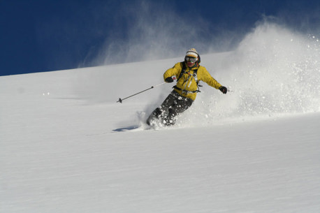 We make use of the existing mountain railways and reach the greatest deep snow runs with short climbs. Our guides will lead you from one dream run to the next, be it on a gentle powder slope or a steep couloir. In the field.